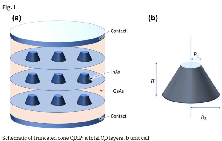 Due to its tunable heterojunction bandgap and great sensitivity to normal incident illumination, the Quantum Dot Infrared Photodetectors (QDIPs) have received a lot of attention for the purpose of infrared sensing. It could be a very promising replacement for conventional infrared photodetectors made with established technology, including mercury cadmium telluride and quantum well infrared photodetectors. In this work, a model for the dark current in semispherical QDIP has been developed, resolves the primary semiconductor Poisson's and continuity equations, where the wave function and the
