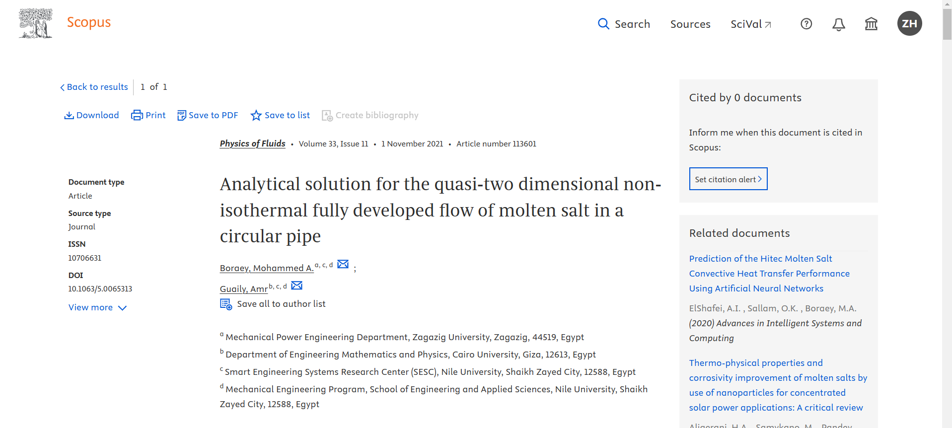 Analytical solution for the quasi-two dimensional non-isothermal fully developed flow of molten salt in a circular pipe