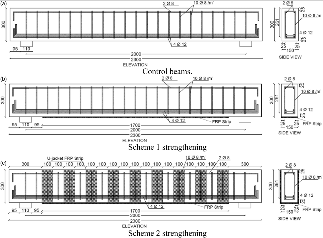 Using recycled aggregate in the construction of reinforced concrete (RC) buildings has become essential to reduce the waste produced from demolished buildings. In this paper, the influence of using carbon fiber reinforced polymer (CFRP) in strengthening of RC beams with recycled coarse aggregate (RCA), as a partial/full replacement for natural coarse aggregate (NCA), was experimentally investigated. Twelve RC beams with various RCA ratios (0%, 30%, 70%, and 100%) were prepared and tested under four-point loading. Four beams without CFRP were tested till failure while the other eight beams were