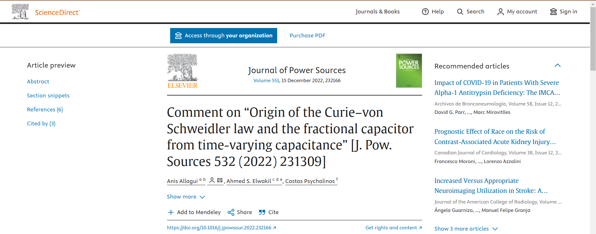 In this Letter we highlight some fundamental errors in the paper “Origin of the Curie–von Schweidler law and the fractional capacitor from time-varying capacitance” [J. Pow. Sources 532 (2022) 231309] by V. Pandey. In particular, with the use of the convolution integral of linear time-varying capacitance with the time-derivative of voltage (i.e. Eq (9) as suggested by the author), one ends up with