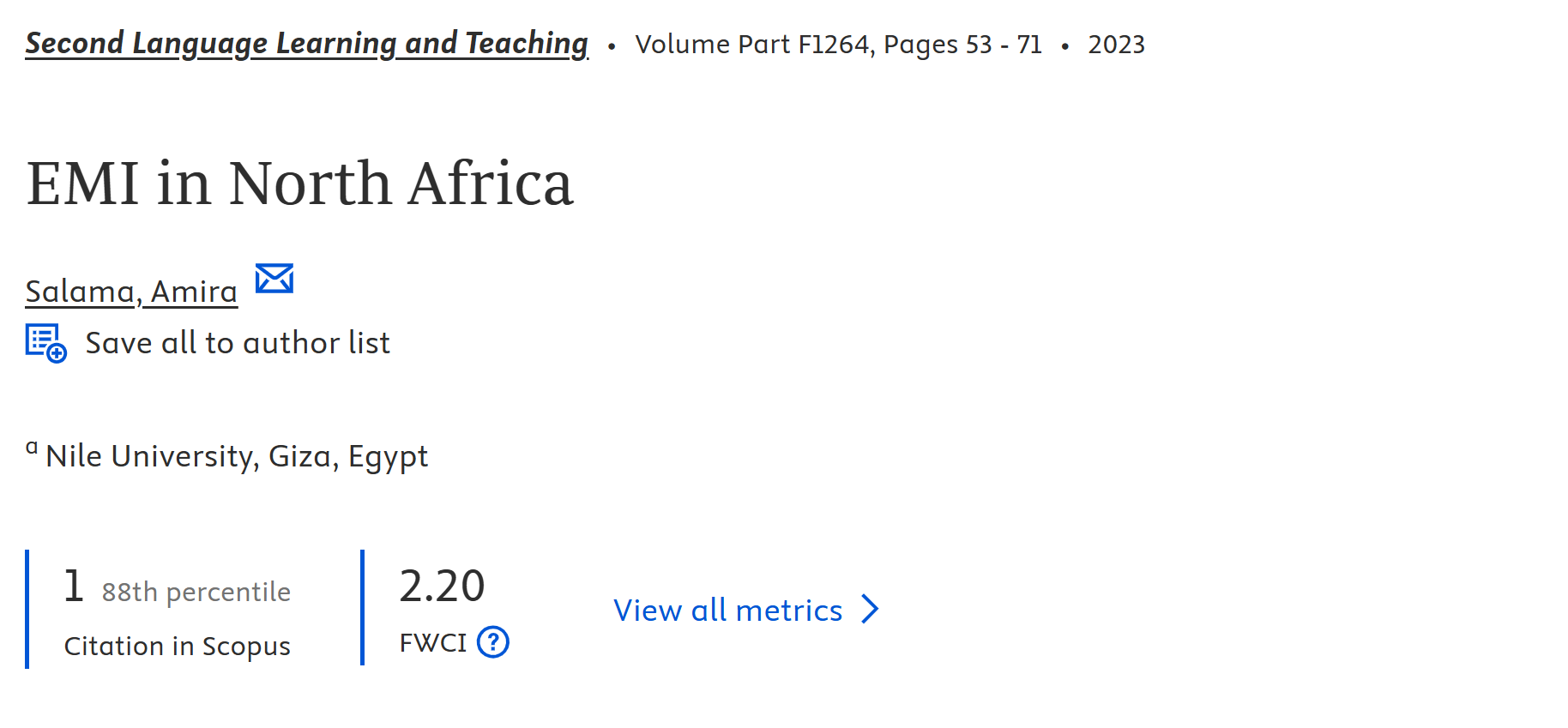 This chapter considers EMI in the north African region, which has witnessed rapid changes in EMI implementation in the last two decades due to the assumption that English is the international language and that EMI instruction would improve students’ English proficiency and provide them with better opportunities in today’s competitive job market (Salama, 2023). However, this rapid EMI adoption in many cases has not been grounded in theory or successful pedagogical practice, and empirical research that provides evidence of EMI effectiveness in this context is still lacking. Thus, this chapter